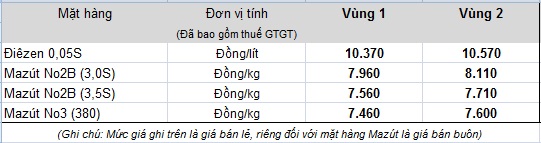 Giá dầu điêzen & mazút do Petrolimex công bố tại TCBC này không áp dụng đối với các CHXD thuộc hệ thống phân phối của thương nhân phân phối xăng dầu và không có dấu hiệu nhận diện thương hiệu Petrolimex.