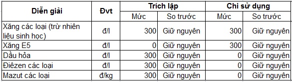 Theo văn bản số 9434/BCT-TTTN của Bộ Công Thương về việc điều hành kinh doanh xăng dầu, mức trích lập và chi sử dụng Quỹ bình ổn giá xăng dầu (BOG) từ 16 giờ 30 ngày 05/10/2016, cụ thể như sau:
