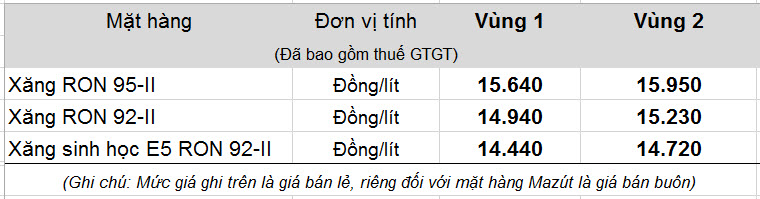Mức giá mới có hiệu lực từ thời điểm 17 giờ 00 ngày 05 tháng 4 năm 2016 cho đến khi có thông cáo báo chí (TCBC) mới.